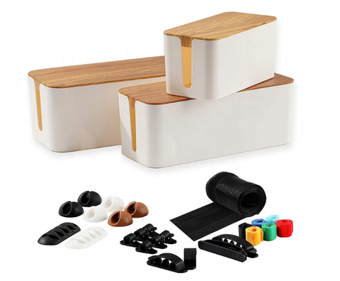 Hot on BSCI Factory Pack Caja organizadora de cables con juego de clips para cables Caja de gestión de cables de plástico de estilo de madera grande, mediana y pequeña