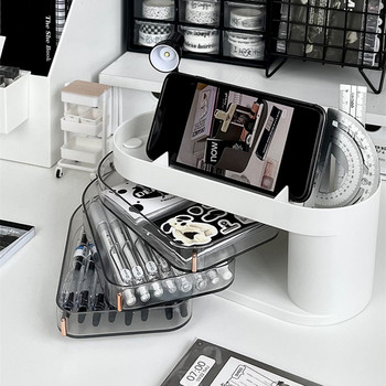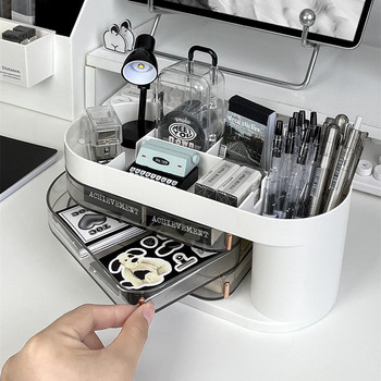 Organizador de escritorio de plástico plegable, organizador de maquillaje de papelería